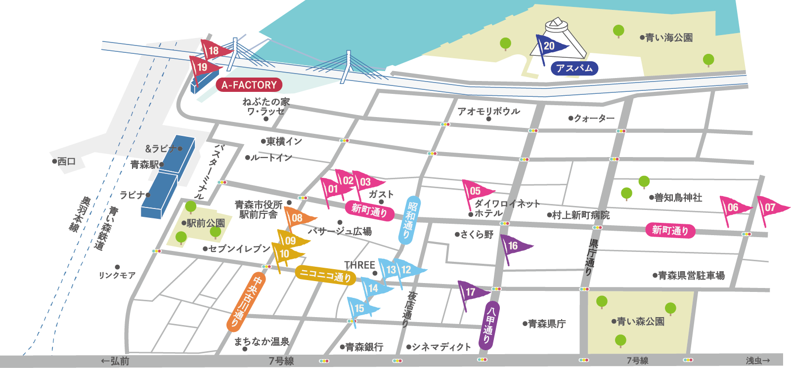 旅人と青森を繋ぐ海と光のラウンジ。ドリンクや音楽を通じた交流の仕掛けと、陸奥湾を望む夜景、ねぶたを使った空間演出で青森の魅力を体感できる。